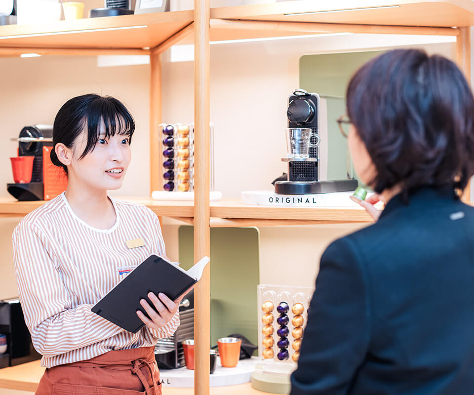 ネスプレッソブティックで働くコーヒースペシャリスト(接客販売スタッフ)の一日の流れをご紹介しています。